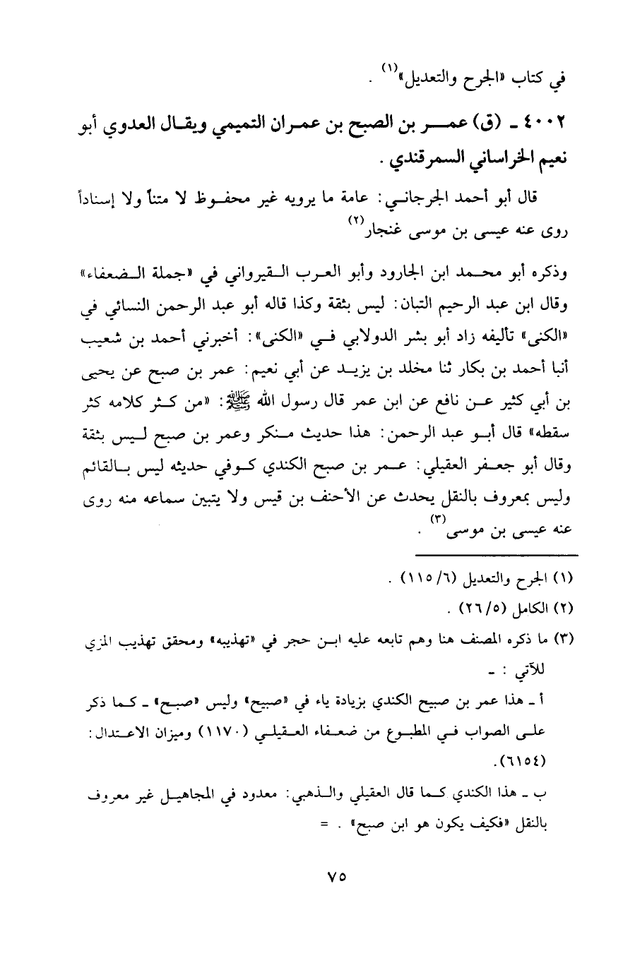 4002 - (ق) عمر بن الصبح بن عمران التميمي ويقال العدوي أبو نعيم الخراساني السمرقندي.