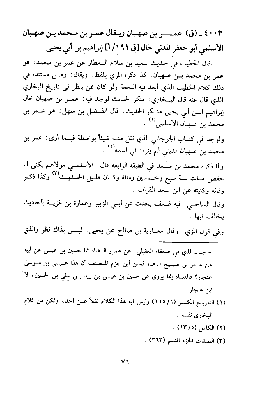 ولوجد في كتاب الجرجاني الذي نقل منه شيئًا بواسطة فيما أرى: عمر بن محمد بن صهبان مديني لم يتردد في اسمه.