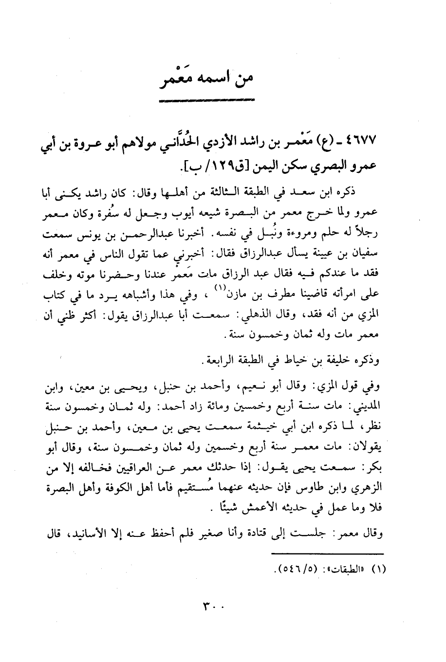 4677 - (ع) معمر بن راشد الأزدي الحداني مولاهم، أبو عروة بن أبي عمرو البصري، سكن اليمن.