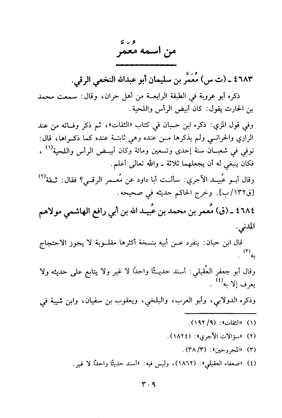 4684 - (ق) معمر بن محمد بن عبيد الله بن أبي رافع، الهاشمي مولاهم، المدني.