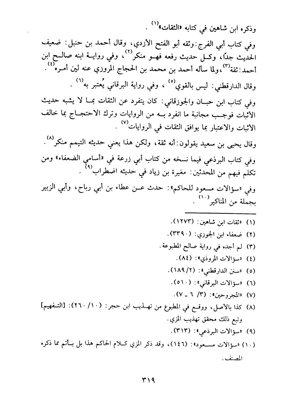 وفي كتاب البرذعي فيما نسخه من كتاب أبي زرعة في «أسامي الضعفاء» ومن تكلم فيهم من المحدثين: مغيرة بن زياد في حديثه اضطراب.