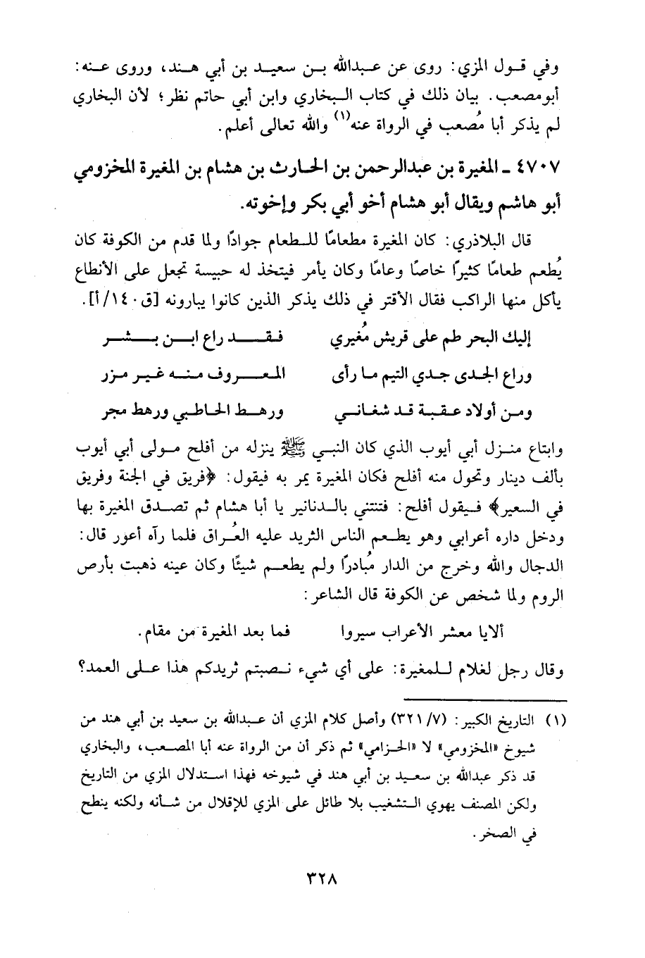 4707 - المغيرة بن عبد الرحمن بن الحارث بن هشام بن المغيرة المخزومي، أبو هاشم، ويقال: أبو هشام، أخو أبي بكر وإخوته.