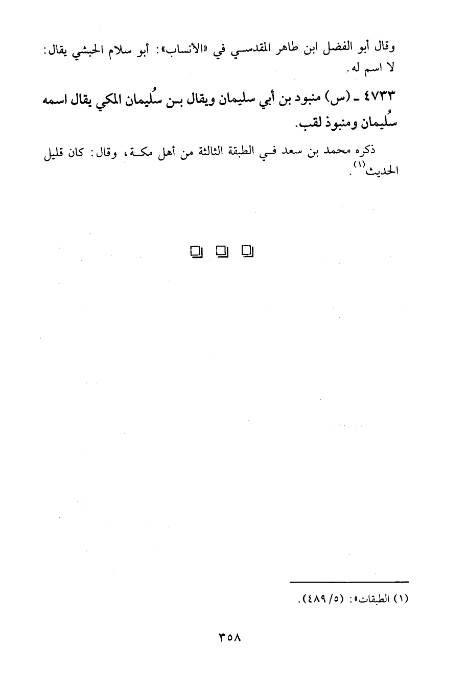 4733 - (س) منبوذ بن أبي سليمان، ويقال: ابن سليمان، المكي، يقال: اسمه سليمان، ومنبوذ لقب.