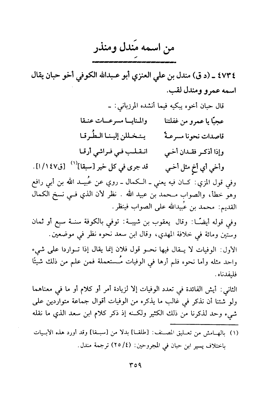 الأول: الوفيات لا يقال فيها: نحو قول فلان، إنما يقال إذا تواردا على شيء واحد مثله، وأما نحوه فلم أرها في الوفيات مستعملة، فمن علم من ذلك شيئا فليفدناه.