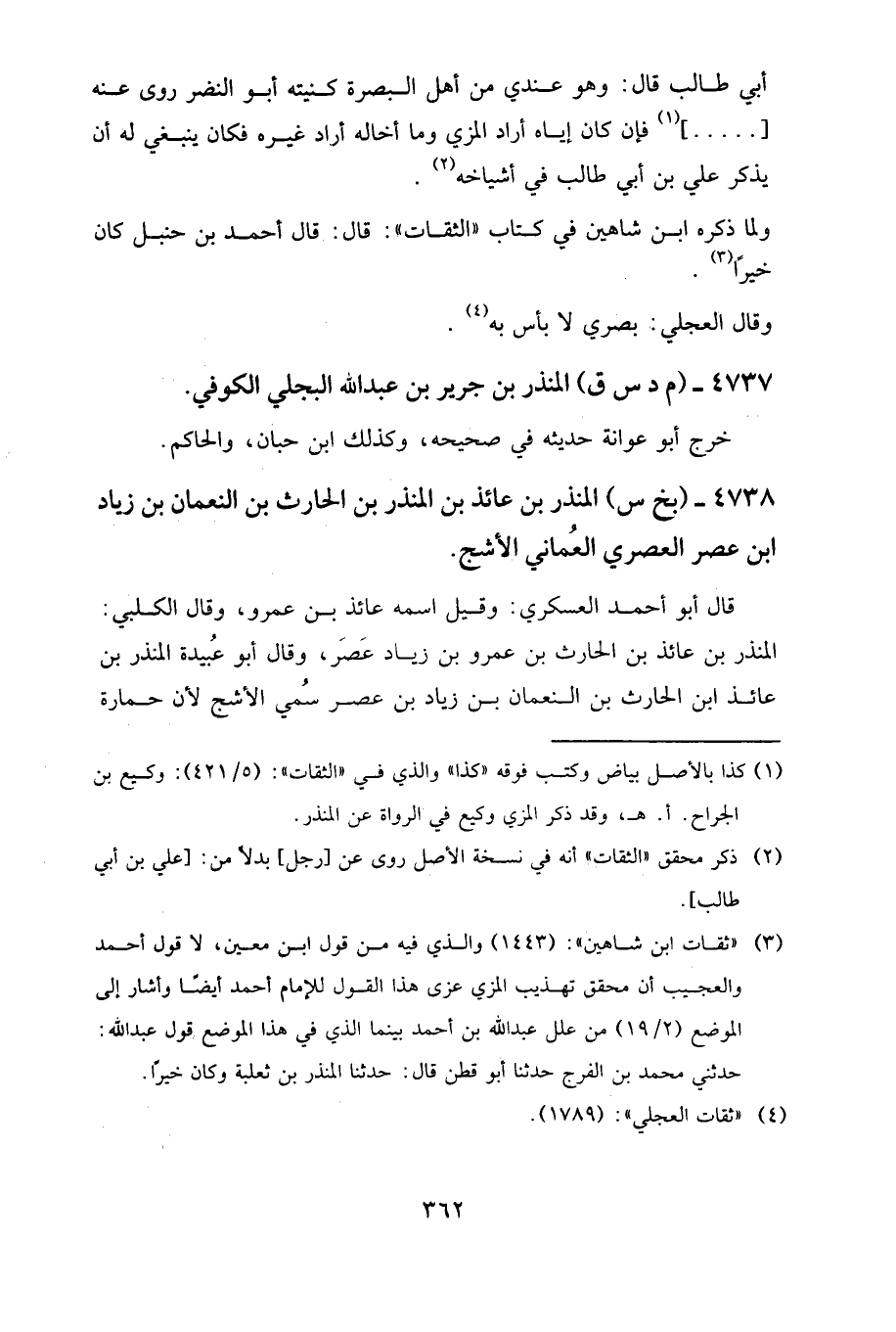 4737 - (م د س ق) المنذر بن جرير بن عبد الله، البجلي الكوفي.