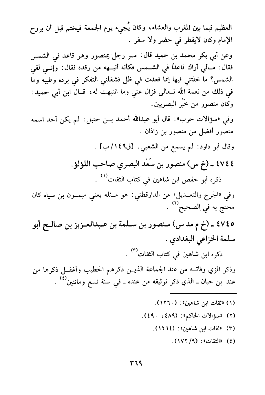 4744 - (خ س) منصور بن سعد البصري، صاحب اللؤلؤ.
