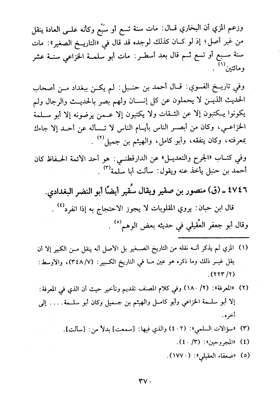 4746 - (ق) منصور بن صقير، ويقال: سقير، أيضا. أبو النضر البغدادي.