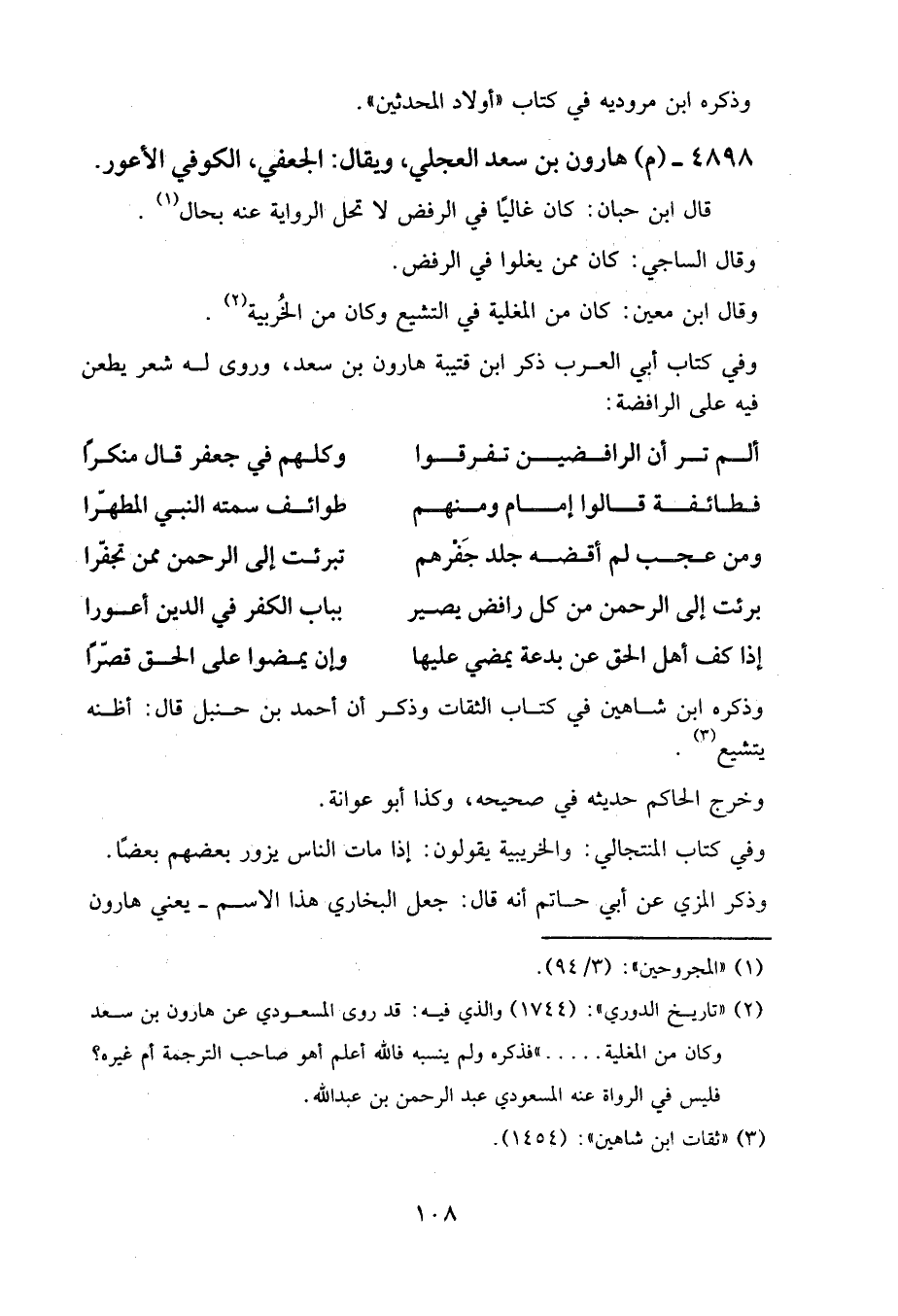 وفي كتاب أبي العرب: ذكر ابن قتيبة هارون بن سعد، وروى له شعرا يطعن فيه على الرافضة: