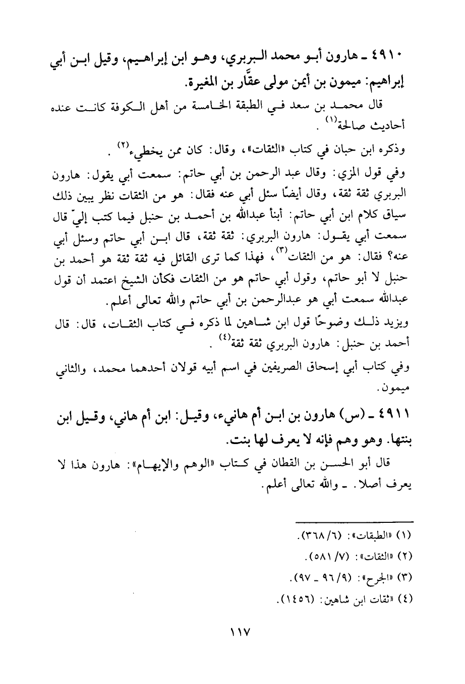 4910 - هارون أبو محمد البربري، وهو ابن إبراهيم، وقيل: ابن أبي إبراهيم: ميمون بن أيمن مولى عقار بن المغيرة.