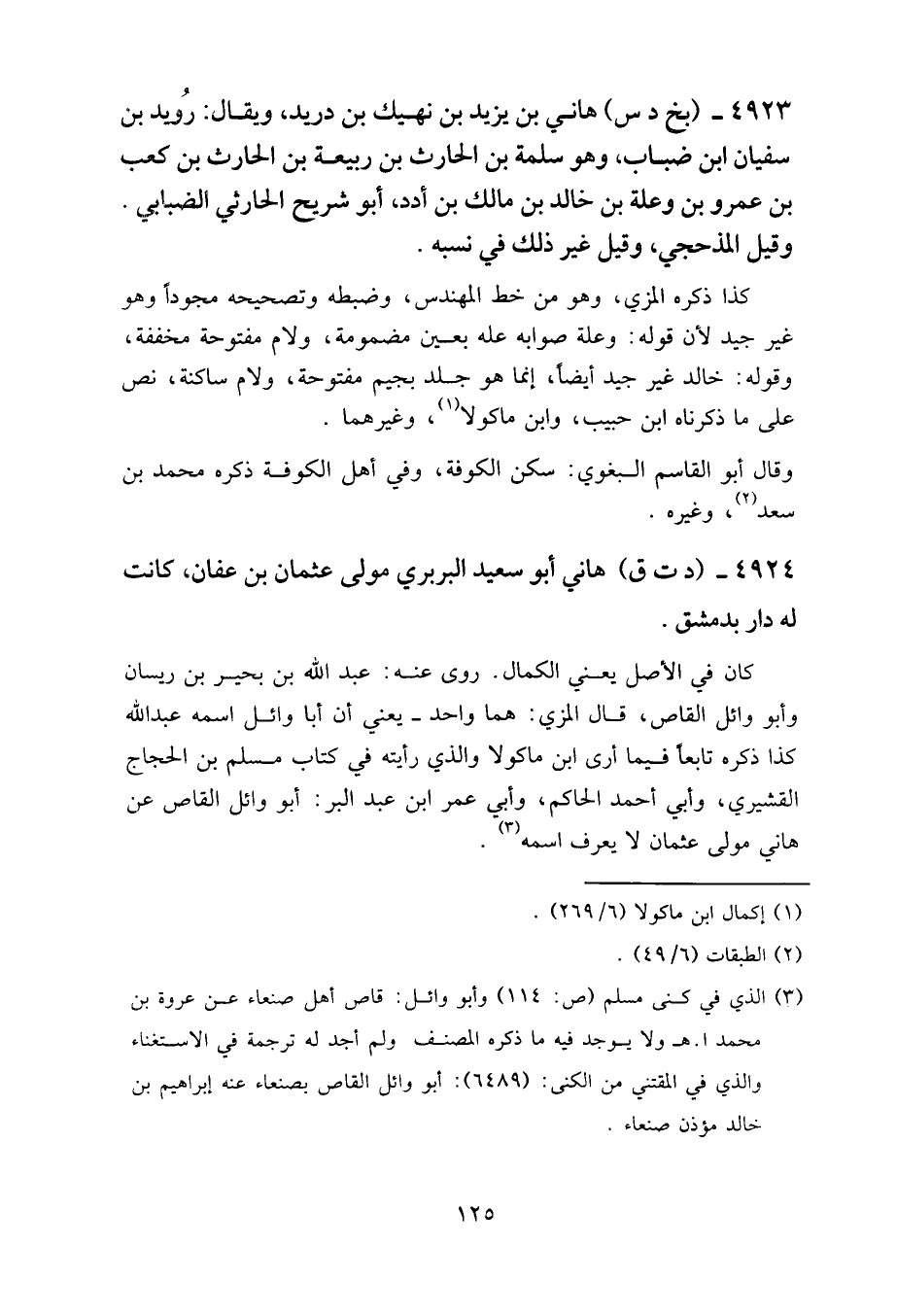 4924 - (د ت ق) هاني أبو سعيد البربري، مولى عثمان بن عفان، كانت له دار بدمشق.