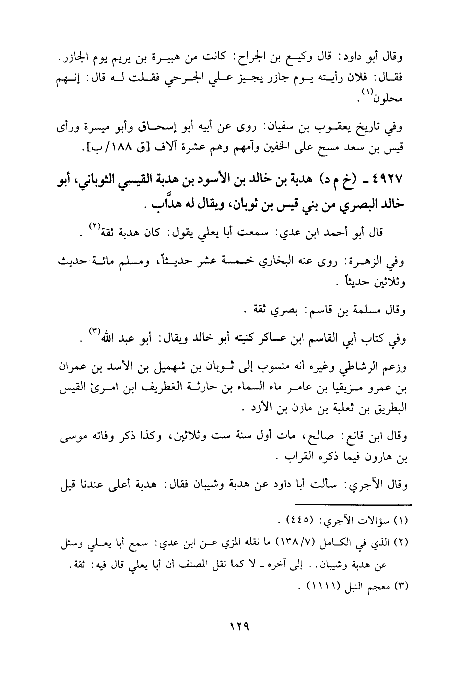 4927 - (خ م د) هدبة بن خالد بن الأسود بن هدبة القيسي الثوباني، أبو خالد البصري، من بني قيس بن ثوبان، ويقال له: هداب.