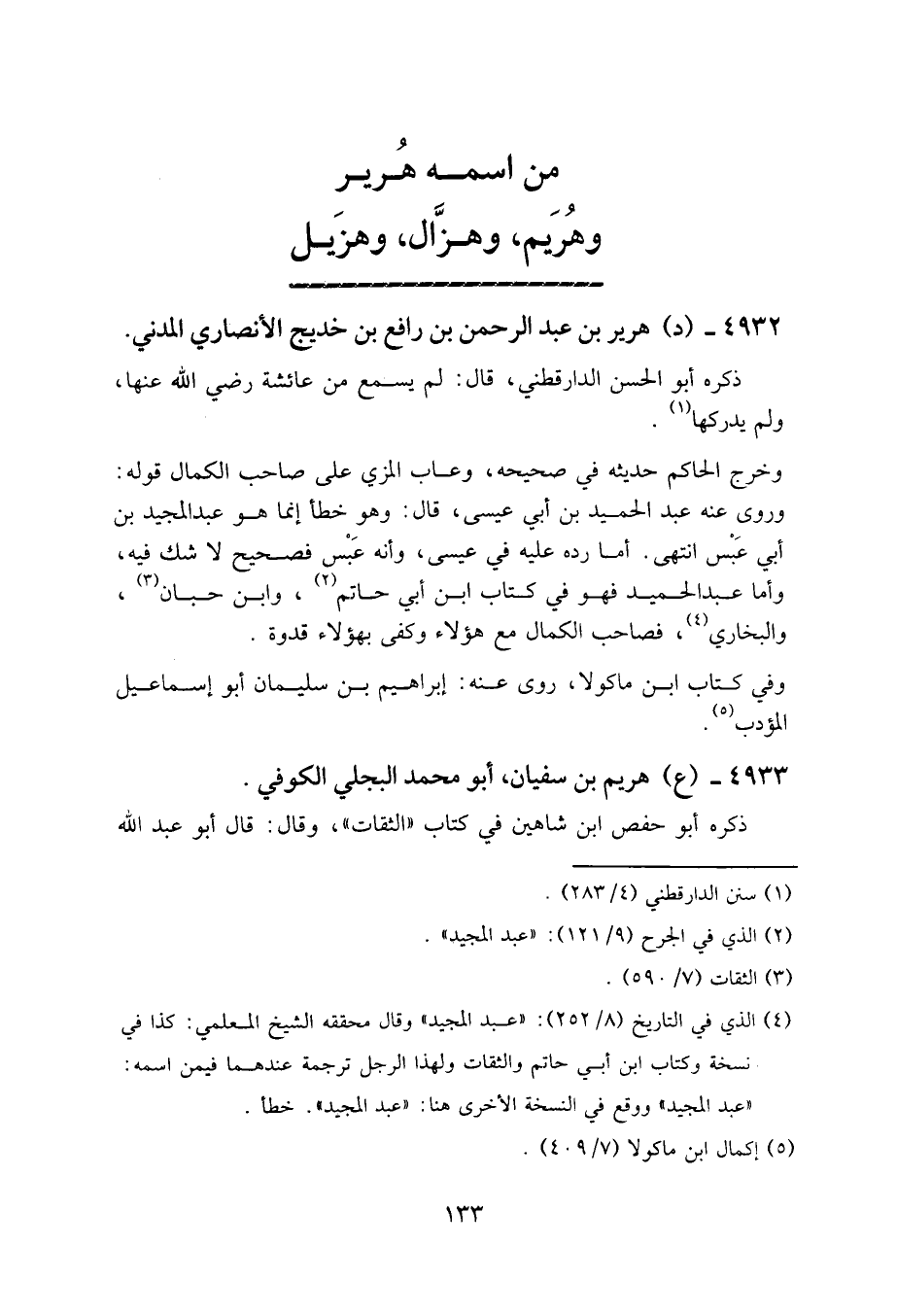 4932 - (د) هرير بن عبد الرحمن بن رافع بن خديج الأنصاري المدني.