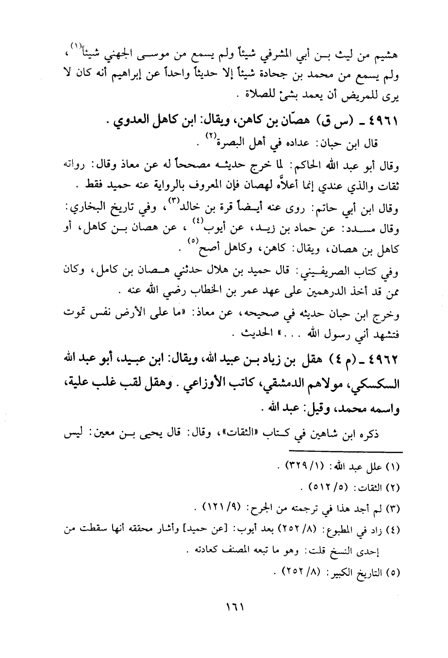وقال ابن أبي حاتم: روى عنه أيضا قرة بن خالد، وفي تاريخ البخاري: وقال مسدد: عن حماد بن زيد، عن أيوب، عن هصان بن كاهل، أو كاهل بن هصان، ويقال: كاهن، وكاهل أصح.