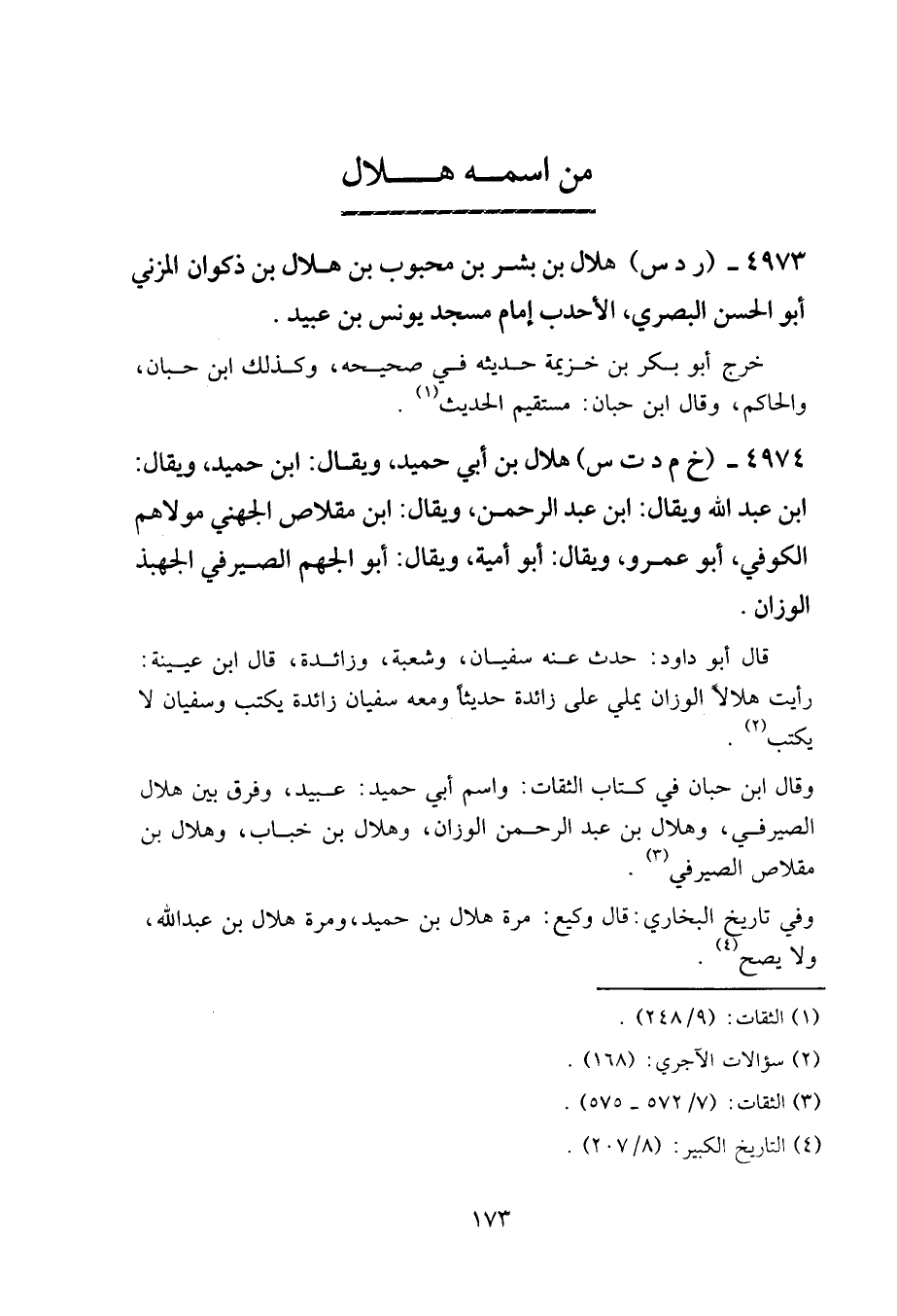 4973 - (ر د س) هلال بن بشر بن محبوب بن هلال بن ذكوان المزني، أبو الحسن البصري الأحدب، إمام مسجد يونس بن عبيد.