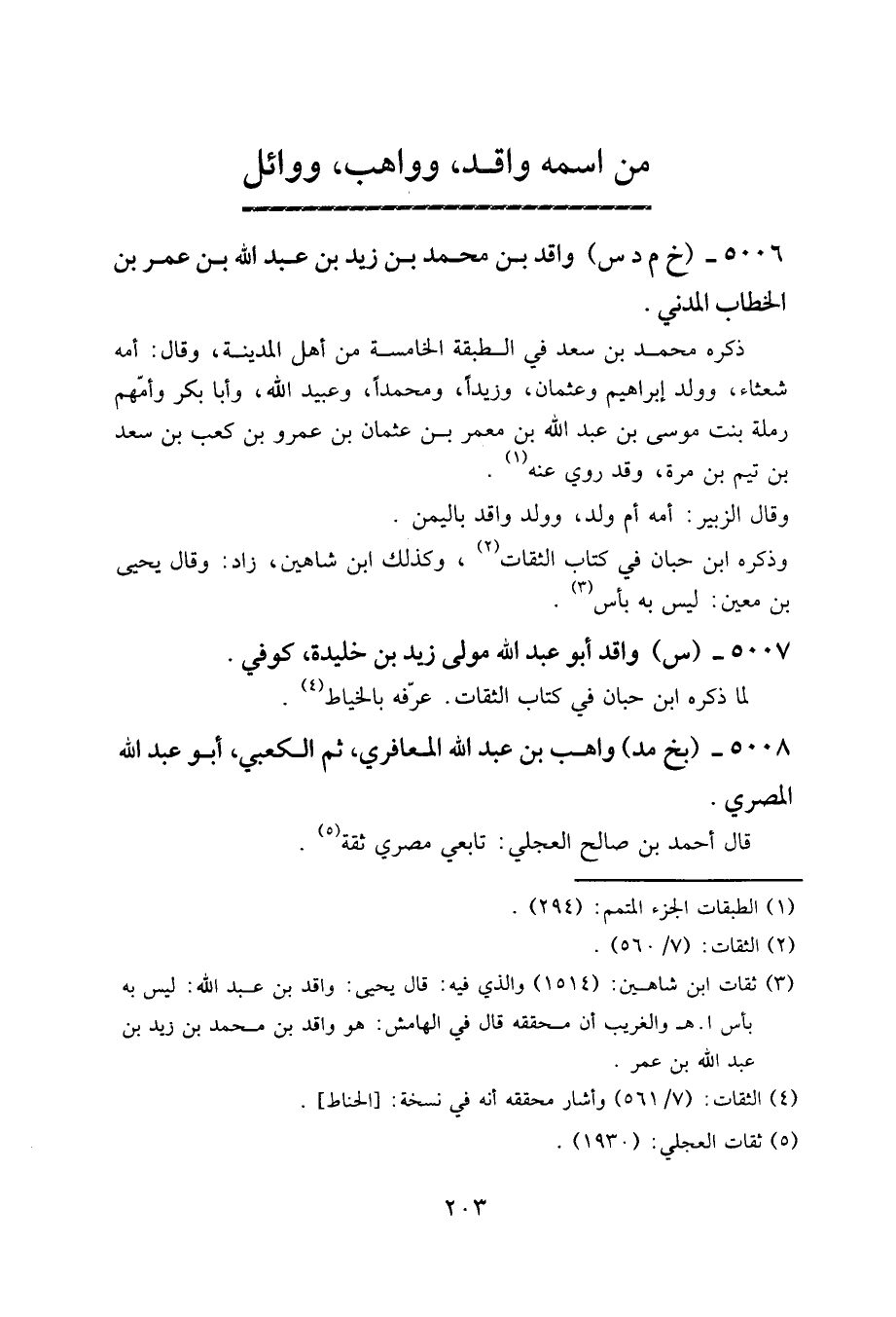 5006 - (خ م د س) واقد بن محمد بن زيد بن عبد الله بن عمر بن الخطاب المدني.