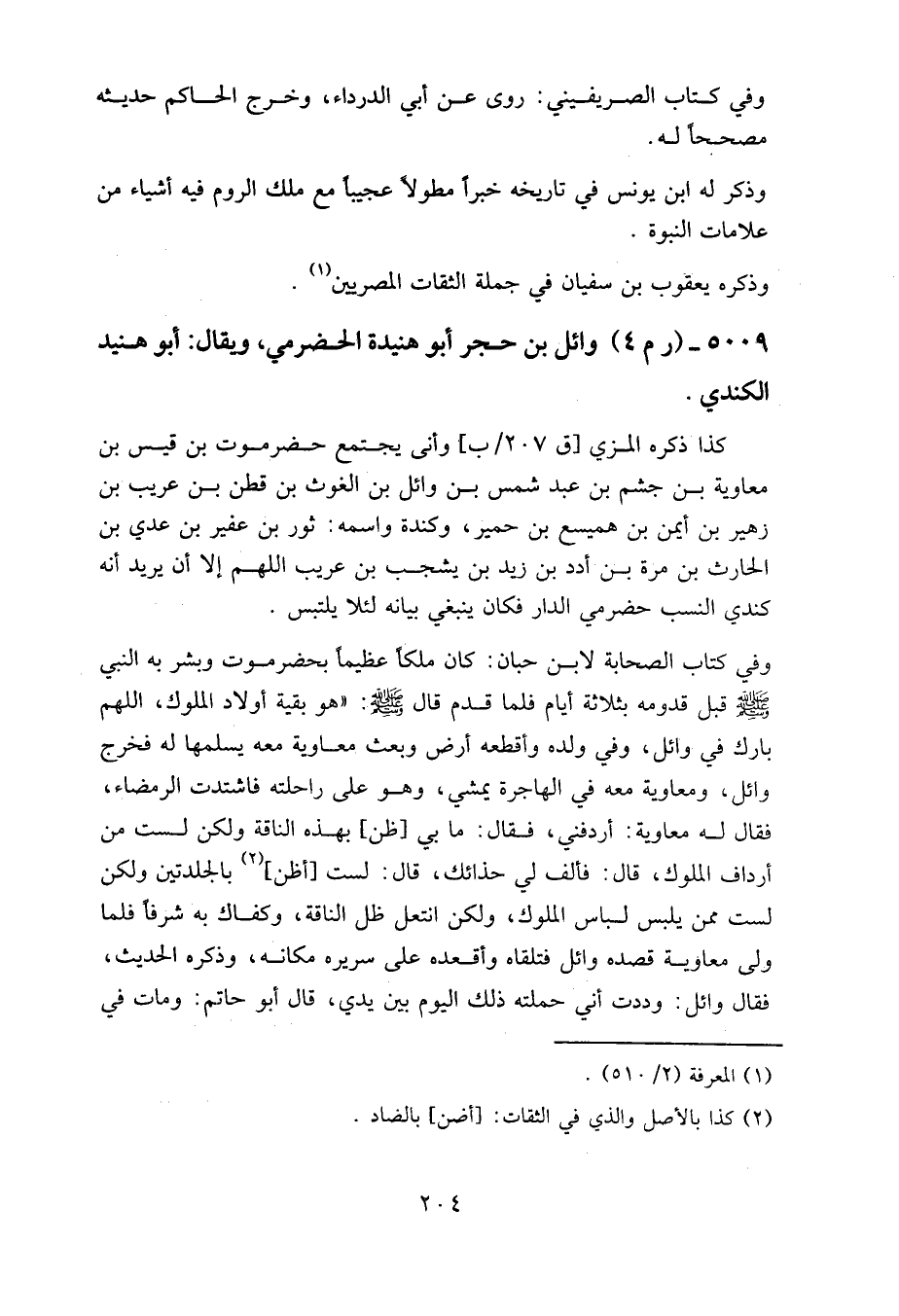 5009 - (ر م 4) وائل بن حجر، أبو هنيدة الحضرمي، ويقال: أبو هنيد الكندي.