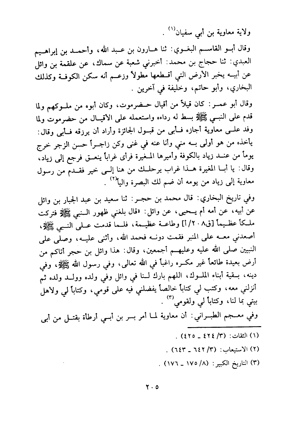 وقال أبو القاسم البغوي: ثنا هارون بن عبد الله، وأحمد بن إبراهيم العبدي: ثنا حجاج بن محمد: أخبرني شعبة عن سماك، عن علقمة بن وائل عن أبيه يخبر الأرض التي أقطعها مطولا، وزعم أنه سكن الكوفة، وكذلك البخاري، وأبو حاتم، وخليفة في آخرين.