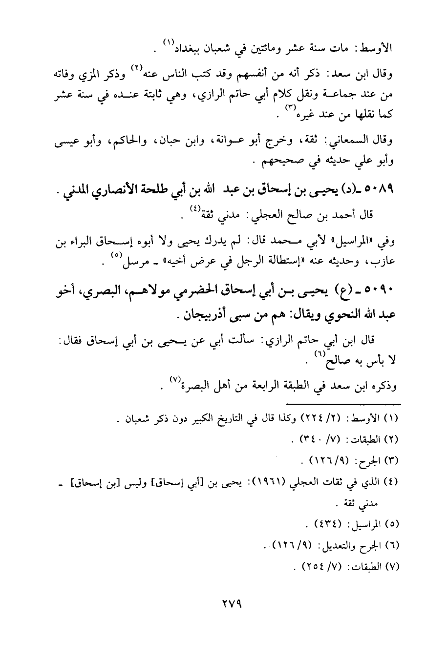 5090 - (ع) يحيى بن أبي إسحاق الحضرمي مولاهم، البصري، أخو عبد الله النحوي، ويقال: هم من سبي أذربيجان.