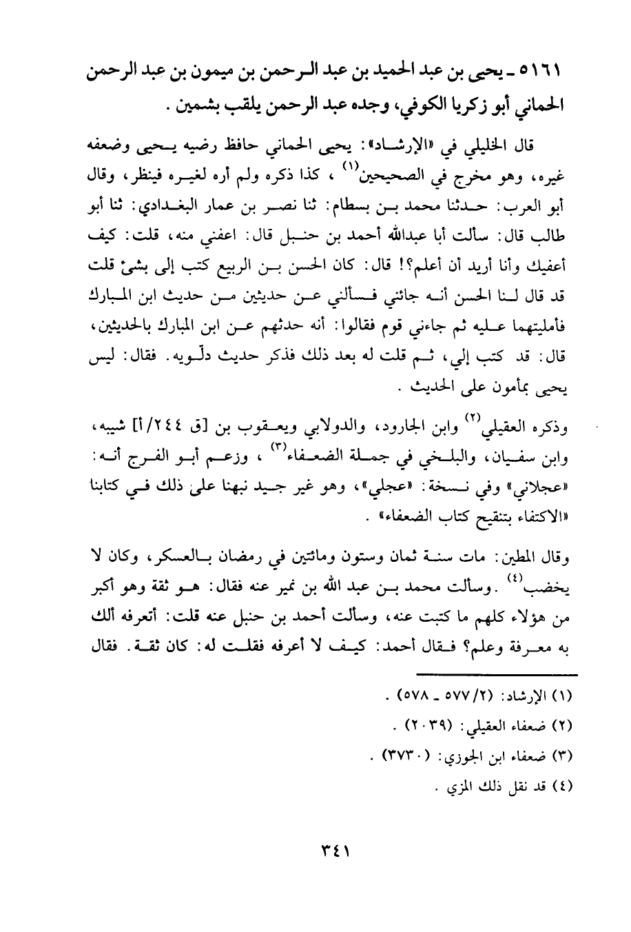 5161 - يحيى بن عبد الحميد بن عبد الرحمن بن ميمون بن عبد الرحمن الحماني، أبو زكريا الكوفي، وجده عبد الرحمن يلقب بشمين.