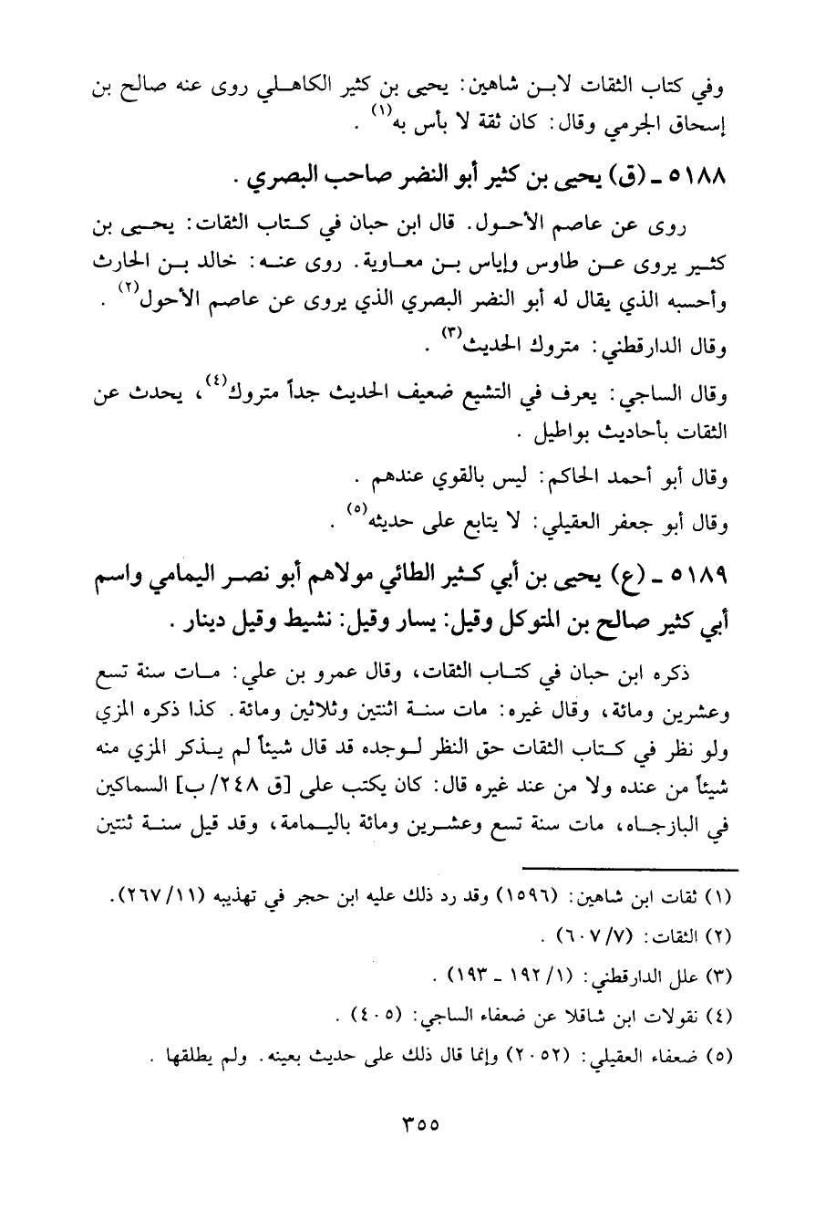 5188 - (ق) يحيى بن كثير أبو النضر صاحب البصري.