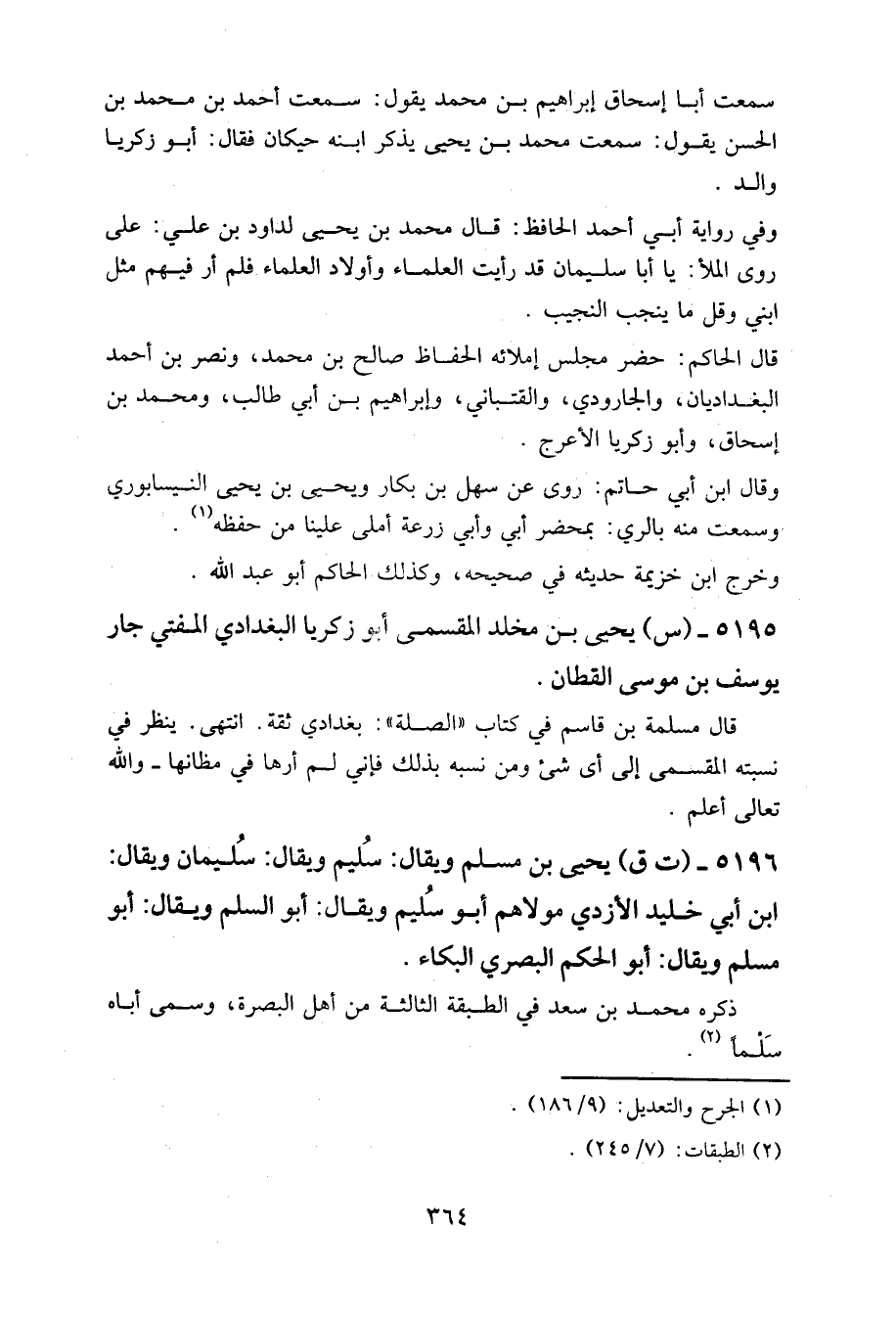 5195 - (س) يحيى بن مخلد المقسمي، أبو زكريا البغدادي، المفتي، جار يوسف بن موسى القطان.