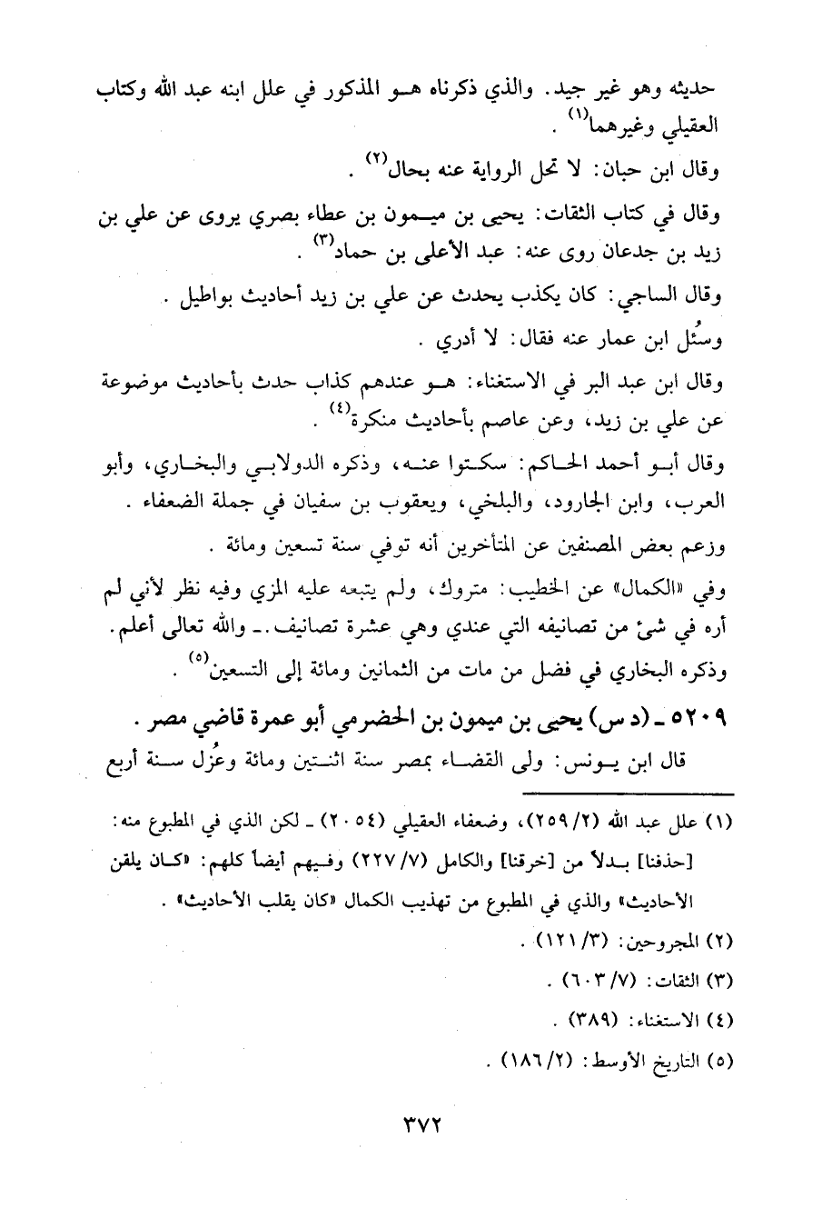 5209 - (د س) يحيى بن ميمون بن الحضرمي، أبو عمرة، قاضي مصر.