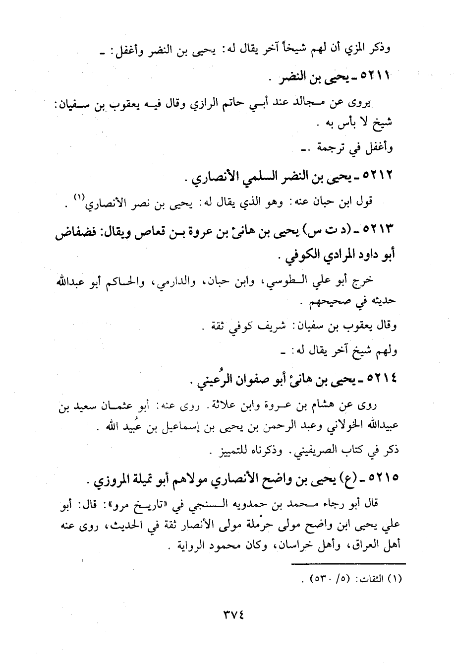 5215 - (ع) يحيى بن واضح الأنصاري مولاهم أبو تميلة المروزي.