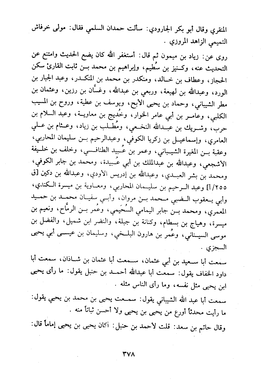 سمعت أبا عبد الله الشيباني يقول: سمعت يحيى بن محمد بن يحيى يقول: ما رأيت محدثا أورع من يحيى بن يحيى، ولا أحسن ثباتا منه.