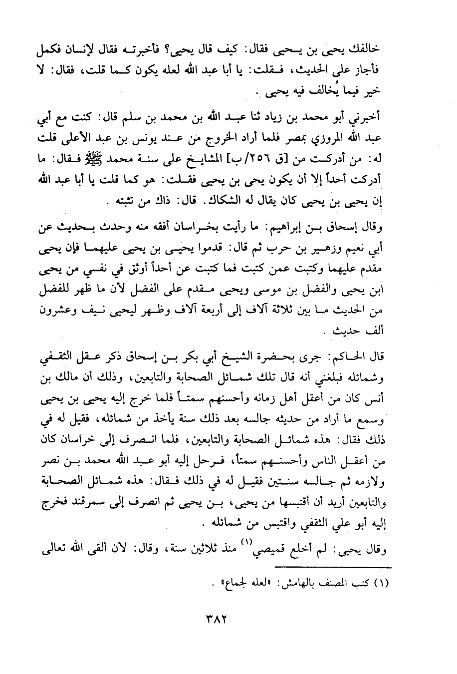 أخبرني أبو محمد بن زياد، ثنا عبد الله بن محمد بن سلم قال: كنت مع أبي عبد الله المروزي بمصر، فلما أراد الخروج من عند يونس بن عبد الأعلى قلت له: من أدركت من [ق256/ب] المشايخ على سنة محمد - صلى الله عليه وسلم –؟ فقال: ما أدركت أحدا إلا أن يكون يحيى بن يحيى، فقلت: هو كما قلت يا أبا عبد الله، إن يحيى بن يحيى كان يقال له: الشكاك. قال: ذاك من تثبته.