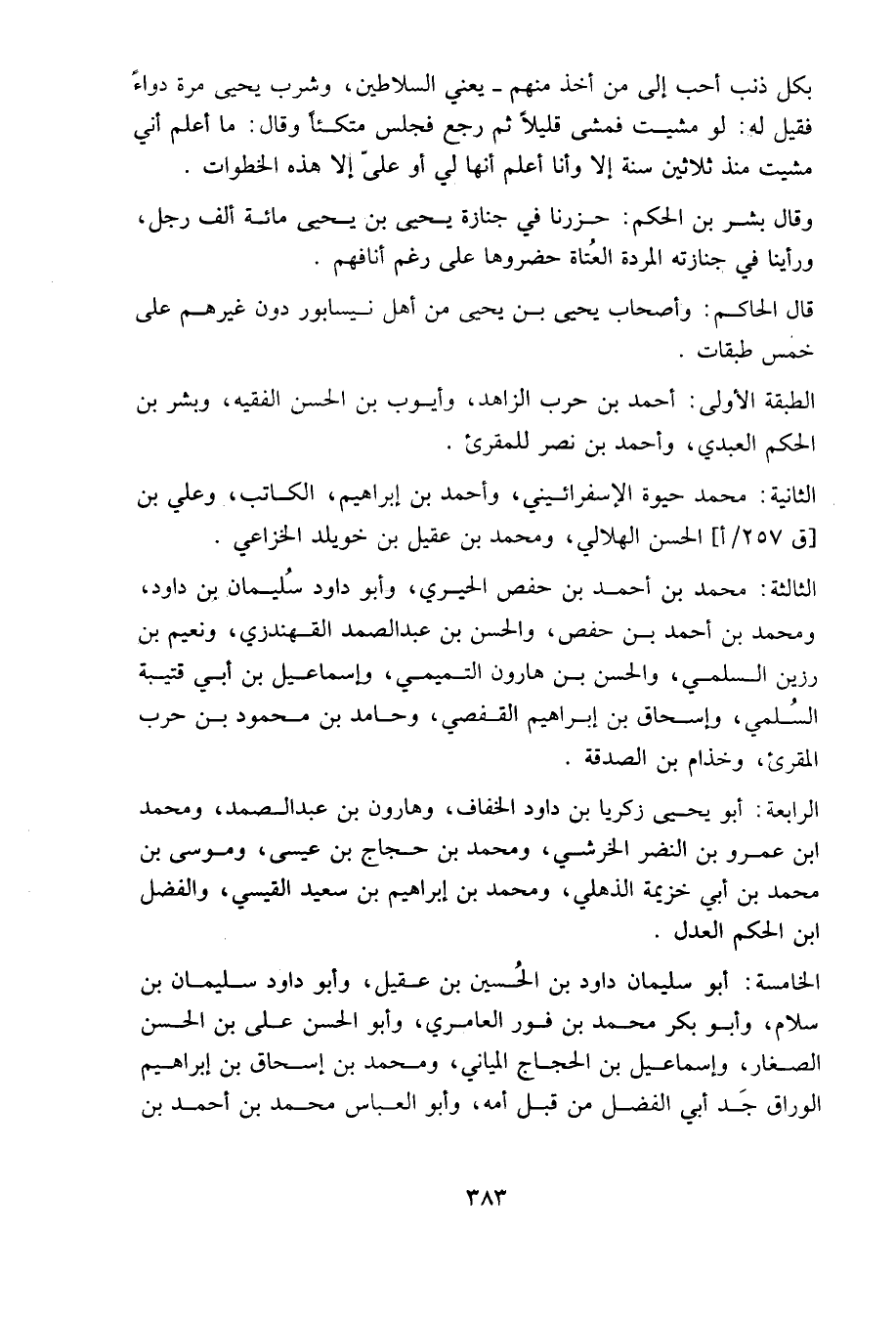 قال الحاكم: وأصحاب يحيى بن يحيى من أهل نيسابور دون غيرهم على خمس طبقات: