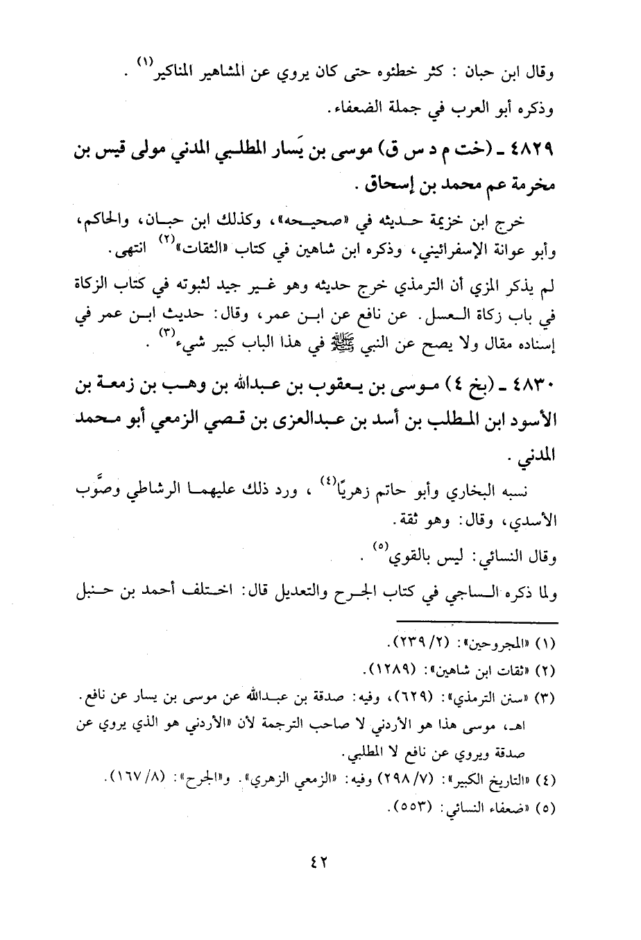 4829 - (خت م د س ق) موسى بن يسار المطلبي المدني، مولى قيس بن مخرمة عم محمد بن إسحاق.