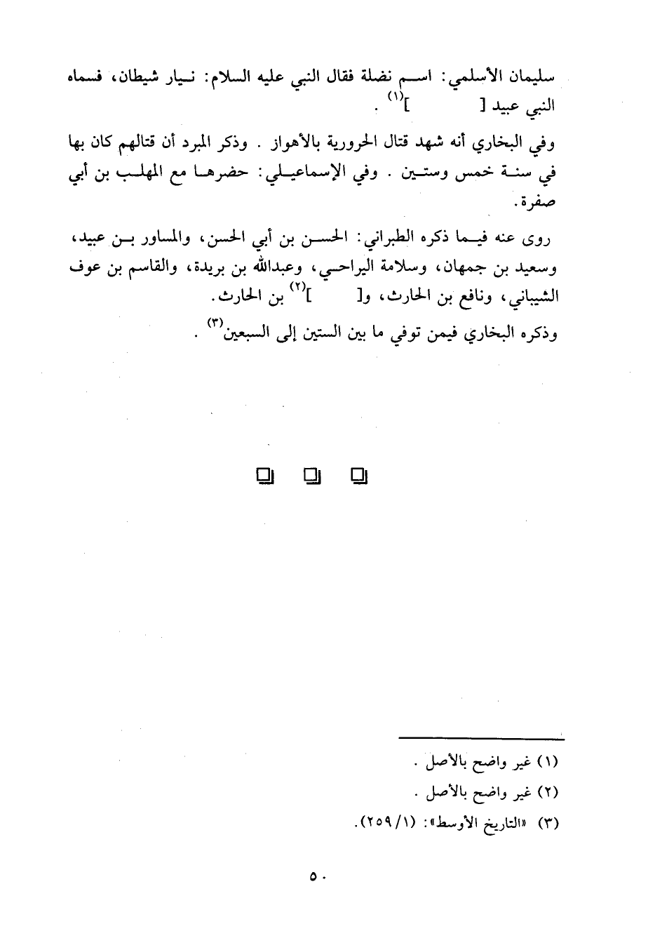 سليمان الأسلمي: اسم نضلة، فقال النبي - عليه السلام -: نيار شيطان، فسماه النبي عبيد [].