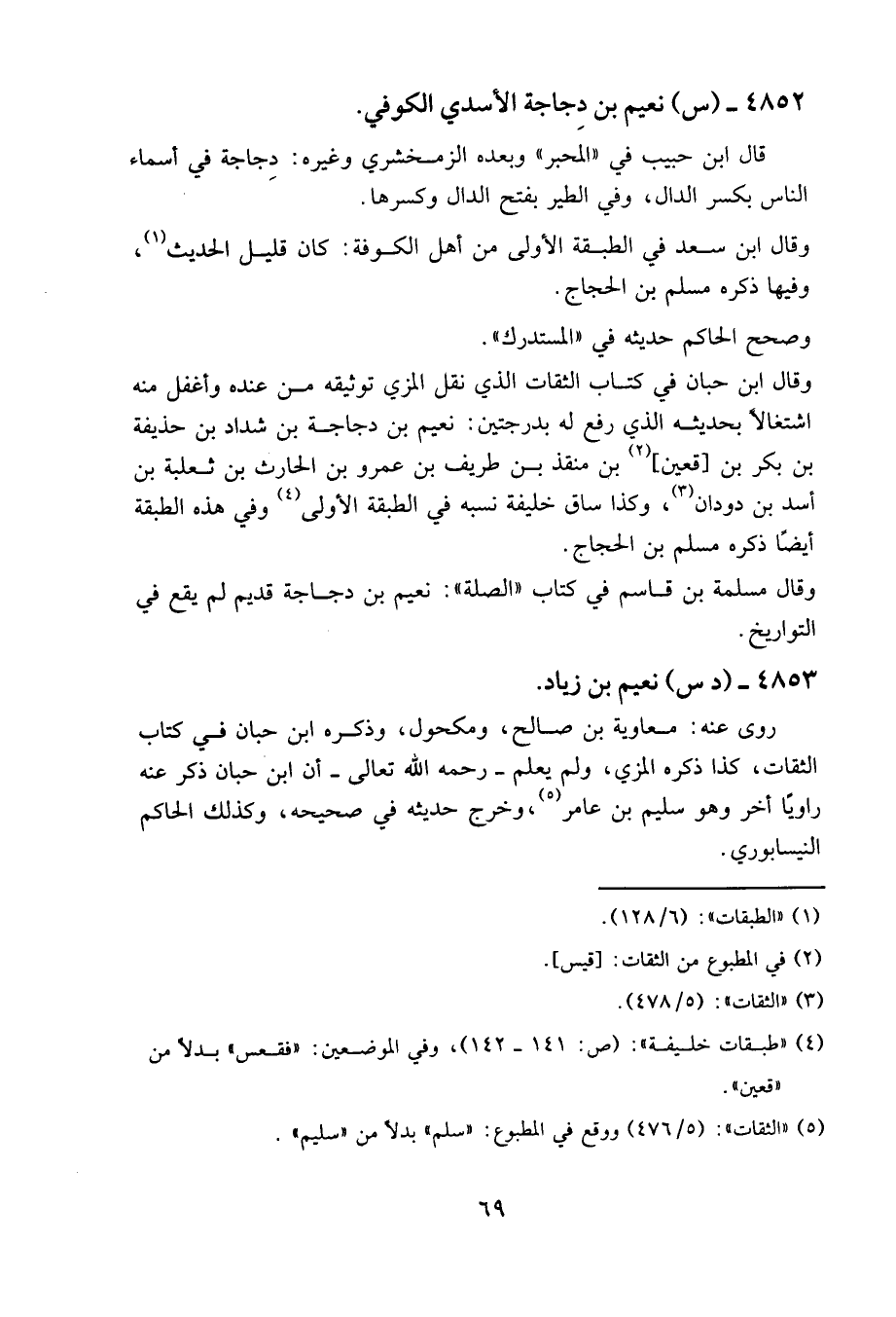 4852 - (س) نعيم بن دجاجة الأسدي الكوفي.