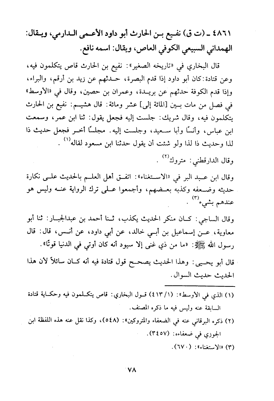 4861 - (ت ق) نفيع بن الحارث، أبو داود الأعمى الدارمي، ويقال: الهمداني السبيعي الكوفي العاص، ويقال: اسمه نافع.