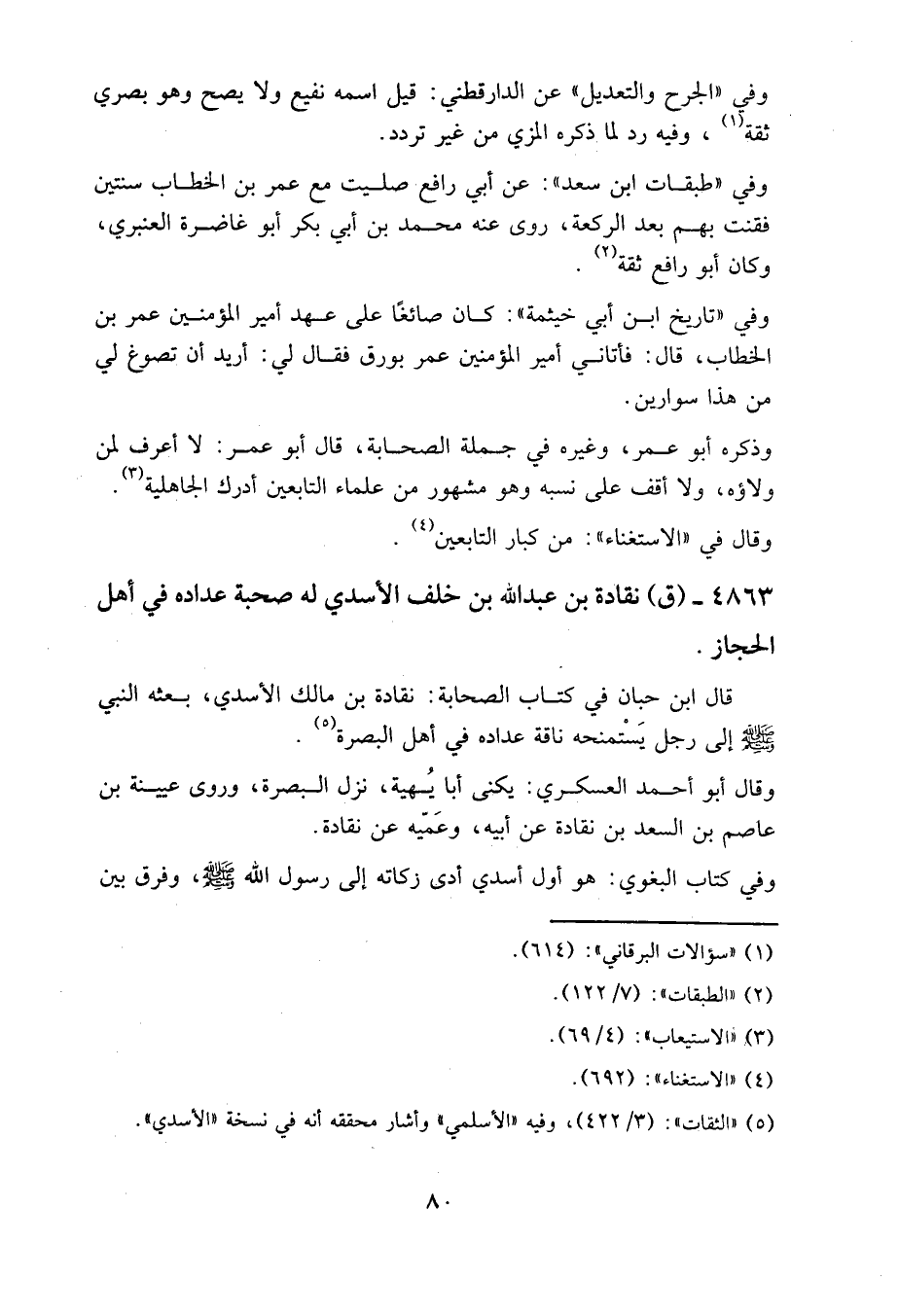 4863 - (ق) نقادة بن عبد الله بن خلف الأسدي، له صحبة، عداده في أهل الحجاز.