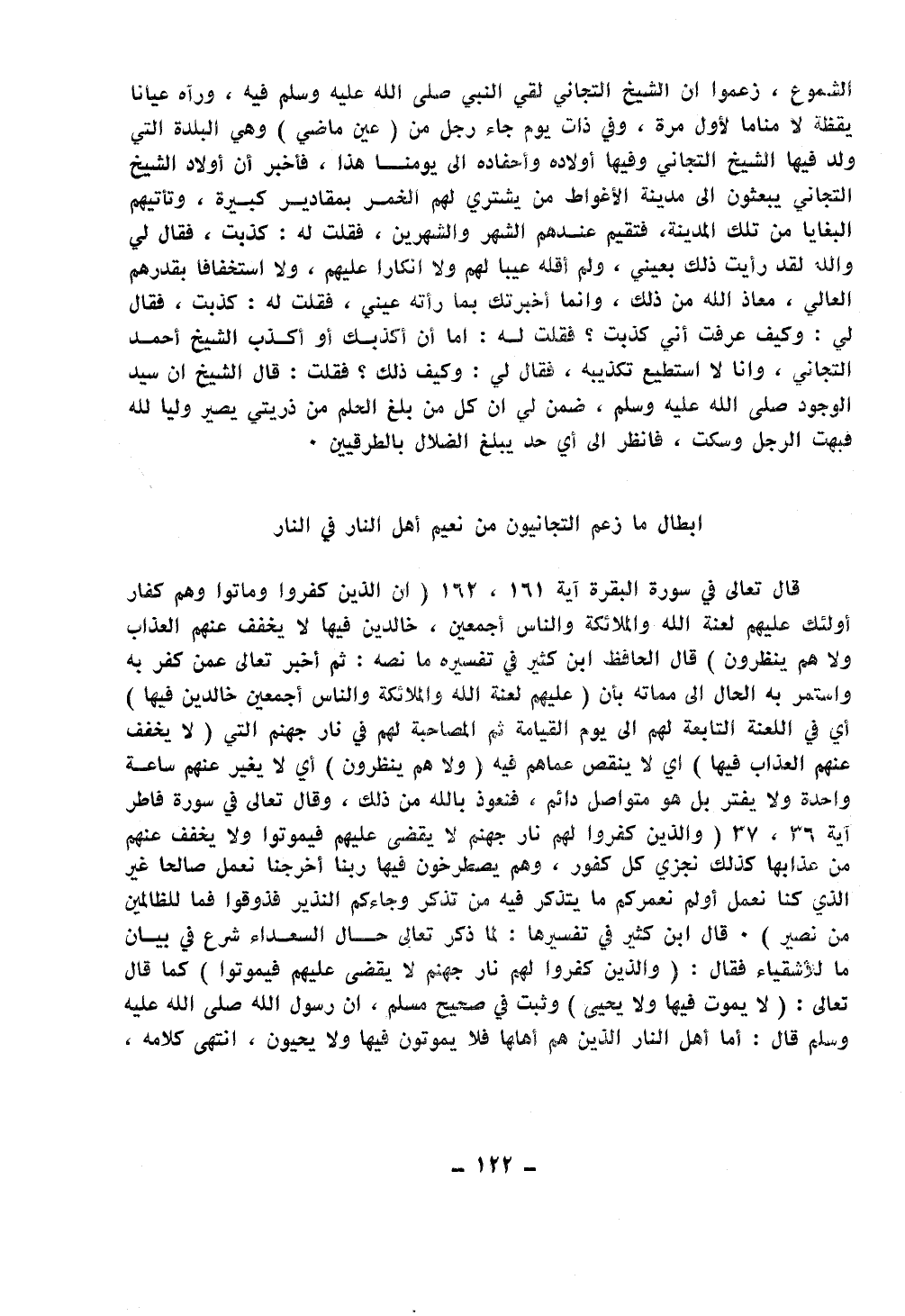 إبطال ما زعم التجانيون من نعيم أهل النار في النار