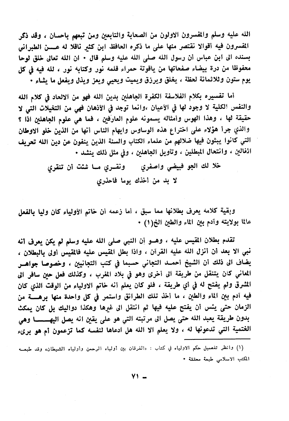 (¬1) وانظر تفصيل حكم الأولياء في كتاب: " الفرقان بين أولياء الرحمن وأولياء الشيطان " وقد طبعه المكتب الإسلامي طبعة محققة.