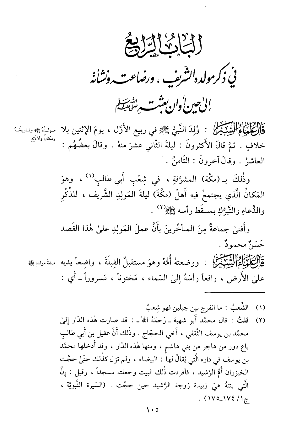 الباب الرّابع في ذكر مولده الشّريف، ورضاعته ونشأته إلى حين أوان بعثته صلى الله عليه وسلّم