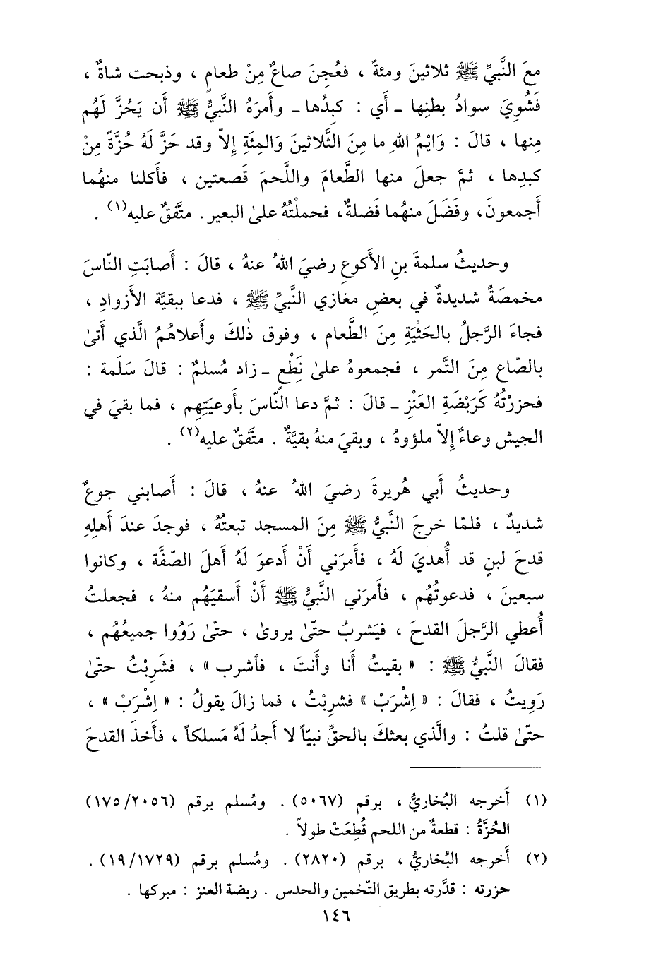 (1) أخرجه البخاريّ، برقم (5067) . ومسلم برقم (2056/ 175) الحزّة: قطعة من اللحم قطعت طولا.