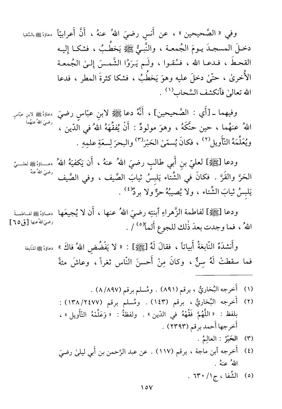ودعا [صلى الله عليه وسلم] لفاطمة الزّهراء ابنته رضي الله عنها، أن لا يجيعها الله، فما وجدت بعد ذلك للجوع ألما «5» /.