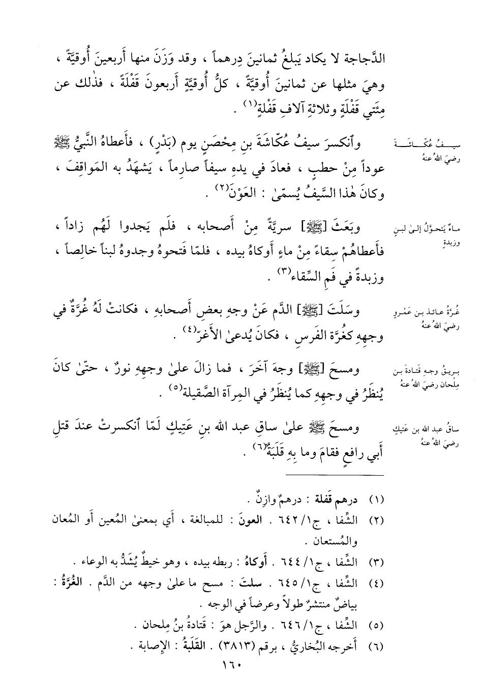 (4) الشّفا، ج 1/ 645. سلت: مسح ما على وجهه من الدّم. الغرّة: بياض منتشر طولا وعرضا في الوجه.