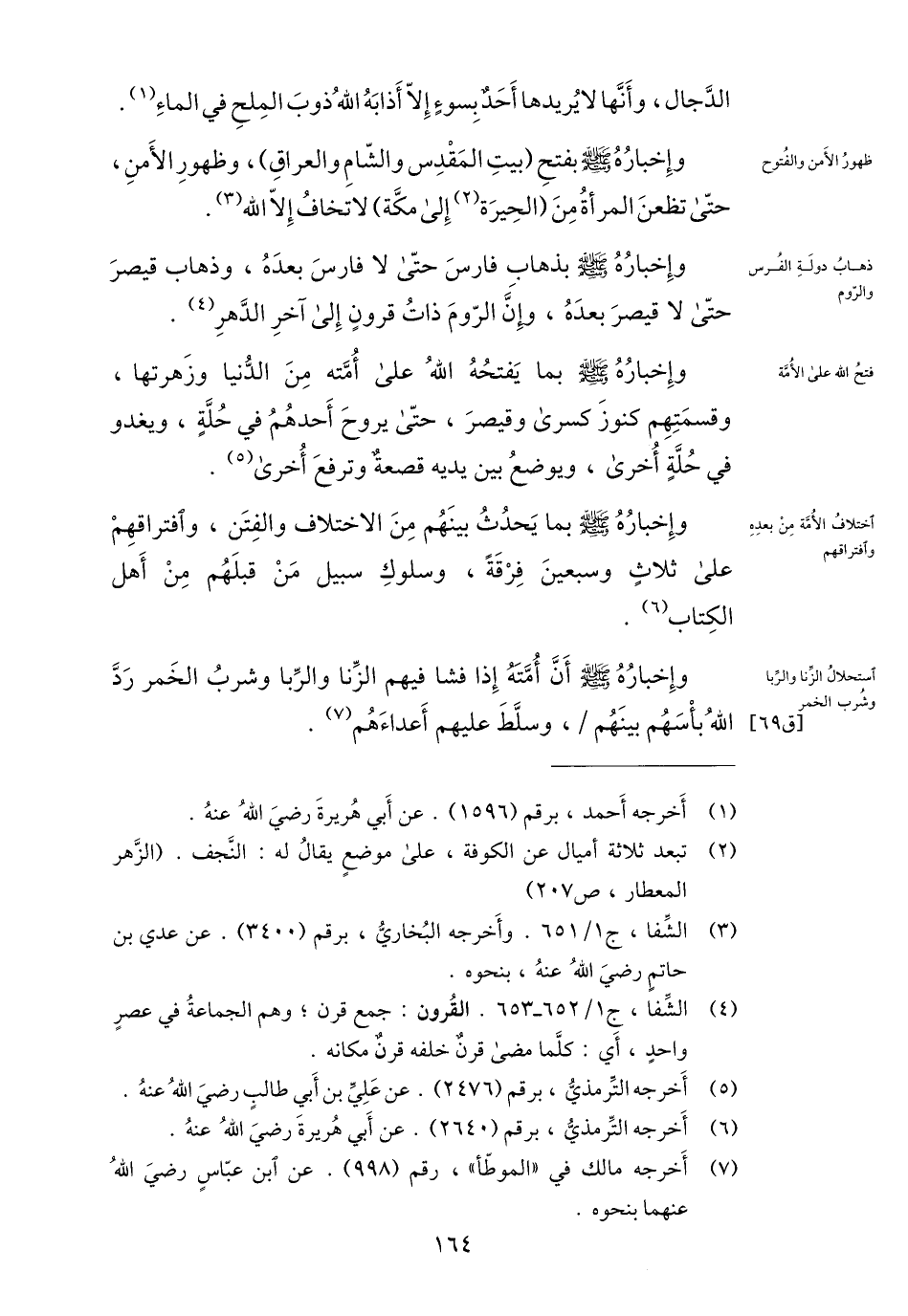 (3) الشّفا، ج 1/ 651. وأخرجه البخاريّ، برقم (3400) . عن عدي بن حاتم رضي الله عنه، بنحوه.