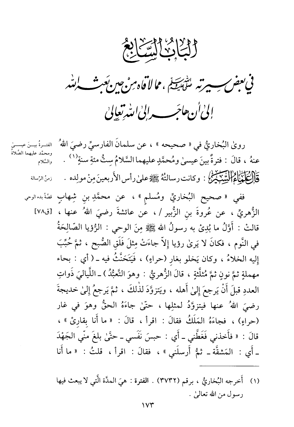 (1) أخرجه البخاريّ، برقم (3732) . الفترة: هي المدّة الّتي لا يبعث فيها رسول من الله تعالى.