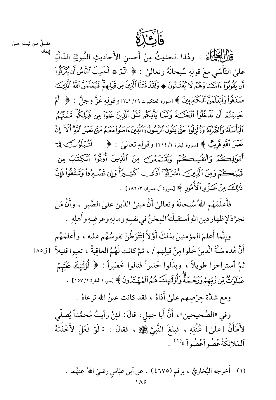 فائدة [: في فضل من ثبت على إيمانه]