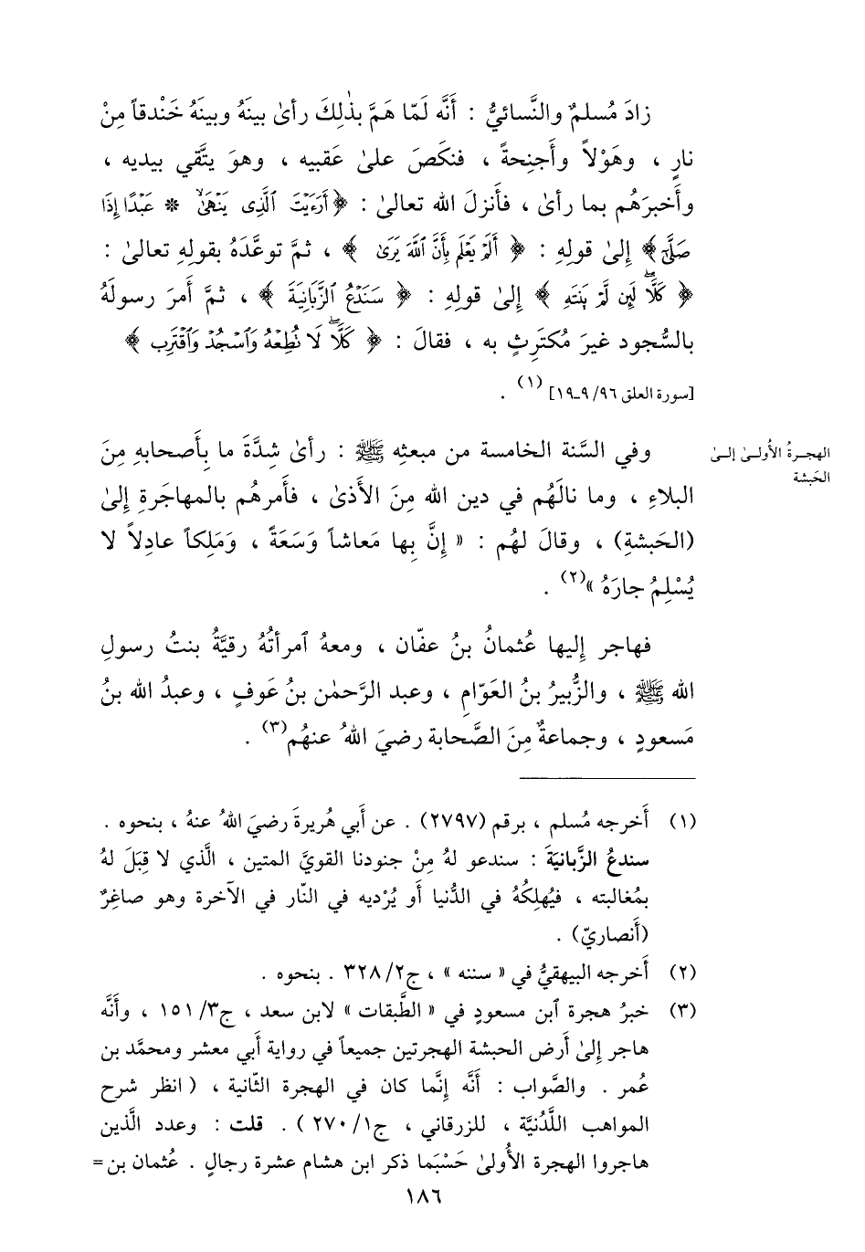 (3) خبر هجرة ابن مسعود في «الطّبقات» لابن سعد، ج 3/ 151، وأنّه هاجر إلى أرض الحبشة الهجرتين جميعا في رواية أبي معشر ومحمّد بن عمر. والصّواب: أنّه إنّما كان في الهجرة الثّانية، (انظر شرح المواهب اللّدنيّة، للزرقاني، ج 1/ 270) . قلت: وعدد الّذين هاجروا الهجرة الأولى حسبما ذكر ابن هشام عشرة رجال. عثمان بن