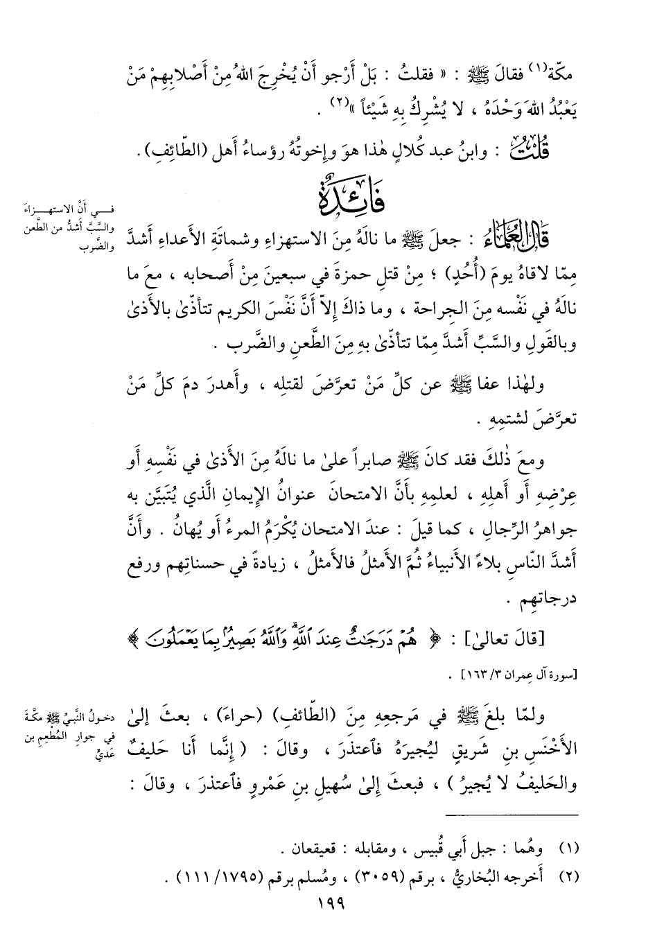 ولمّا بلغ صلى الله عليه وسلم في مرجعه من (الطّائف) (حراء) ، بعث إلى الأخنس بن شريق ليجيره فاعتذر، وقال: (إنّما أنا حليف والحليف لا يجير) ، فبعث إلى سهيل بن عمرو فاعتذر، وقال: