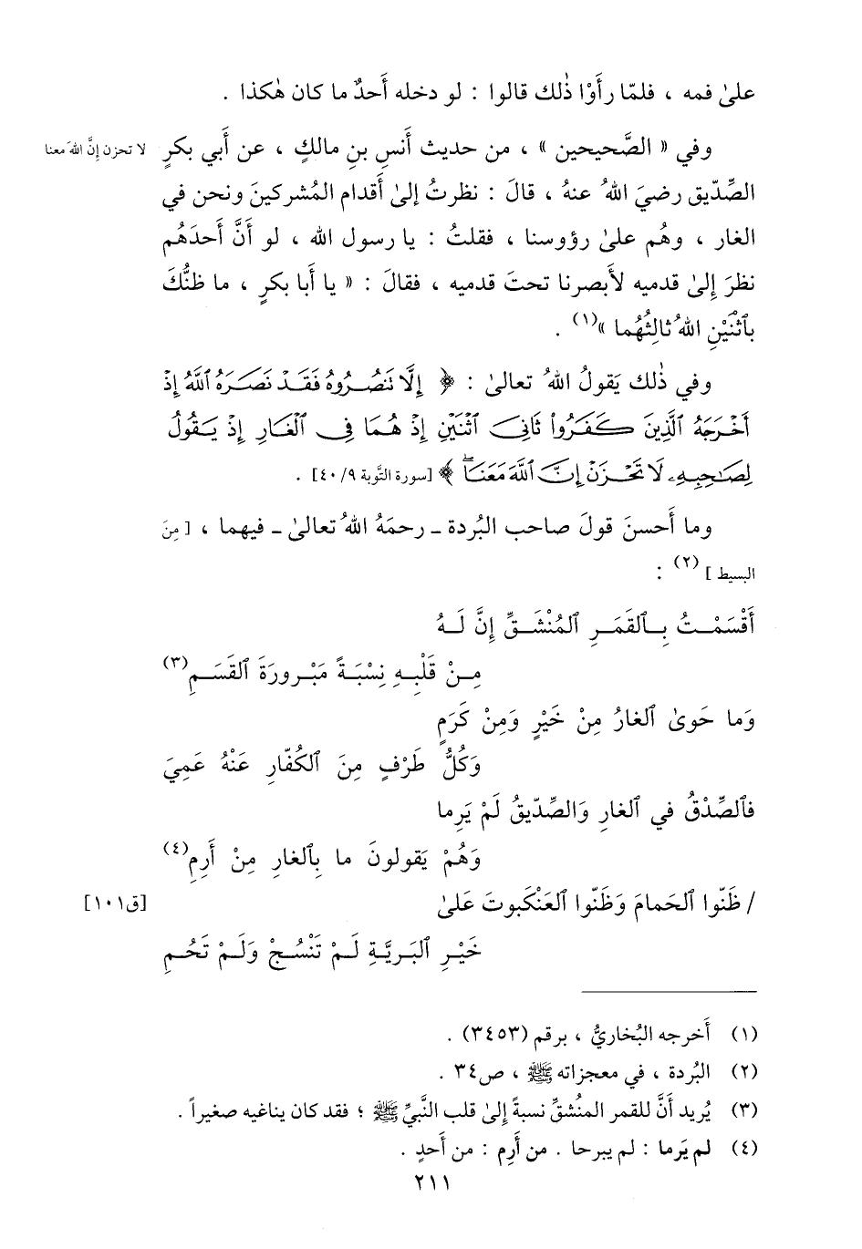 (2) البردة، في معجزاته صلى الله عليه وسلم، ص 34.
