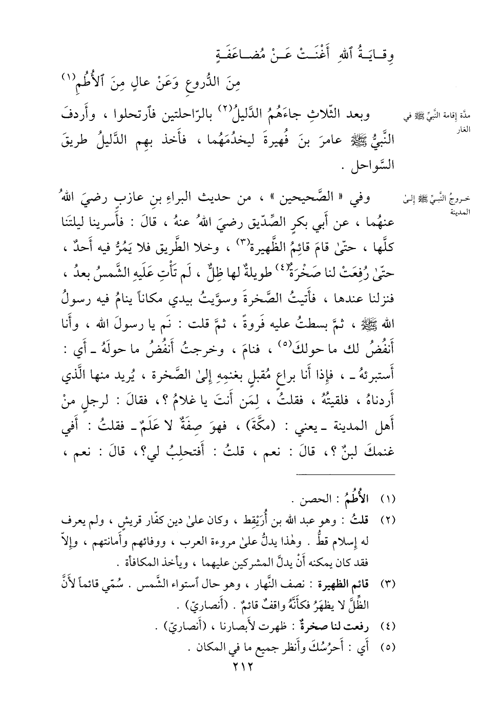 (2) قلت: وهو عبد الله بن أريقط، وكان على دين كفّار قريش، ولم يعرف له إسلام قطّ. وهذا يدلّ على مروءة العرب، ووفائهم وأمانتهم، وإلّا فقد كان يمكنه أن يدلّ المشركين عليهما، ويأخذ المكافأة.