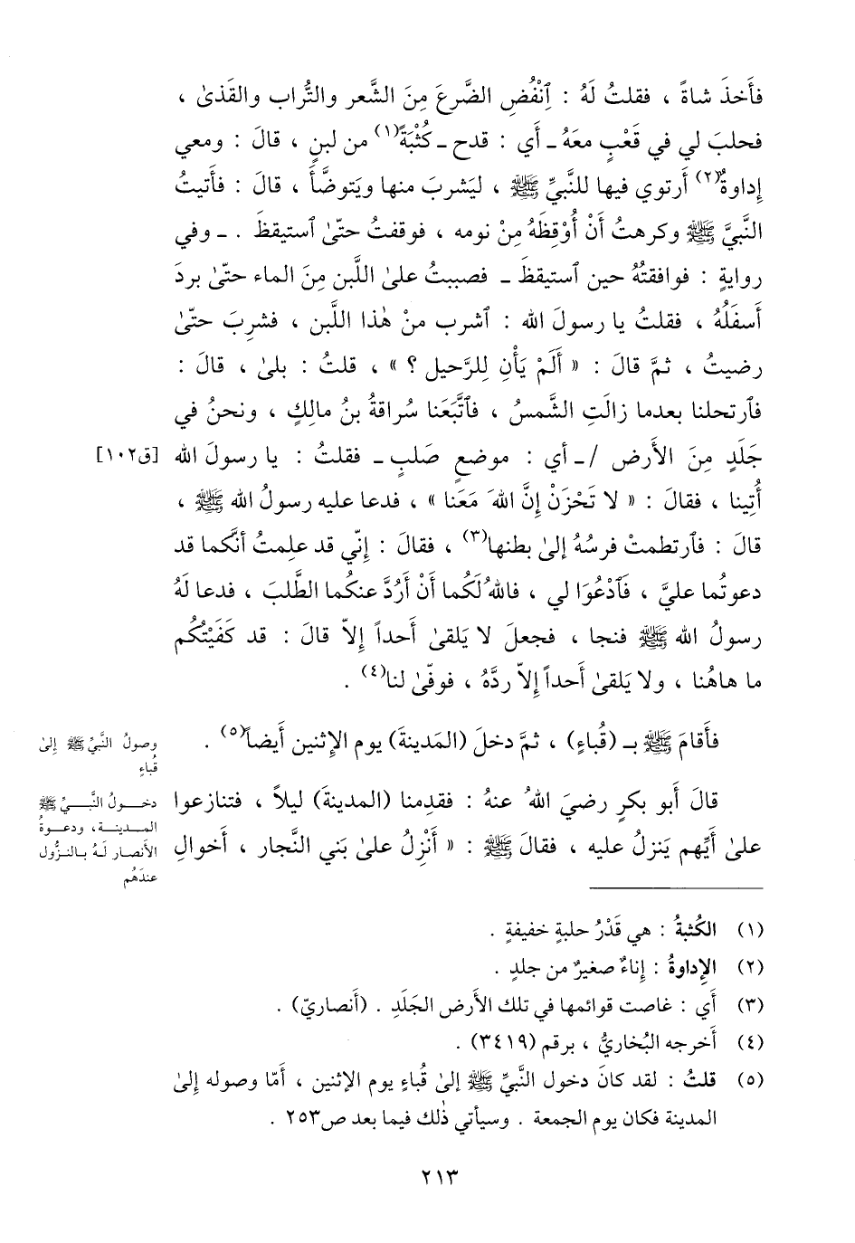 (5) قلت: لقد كان دخول النّبيّ صلى الله عليه وسلم إلى قباء يوم الاثنين، أمّا وصوله إلى المدينة فكان يوم الجمعة. وسيأتي ذلك فيما بعد ص 253.
