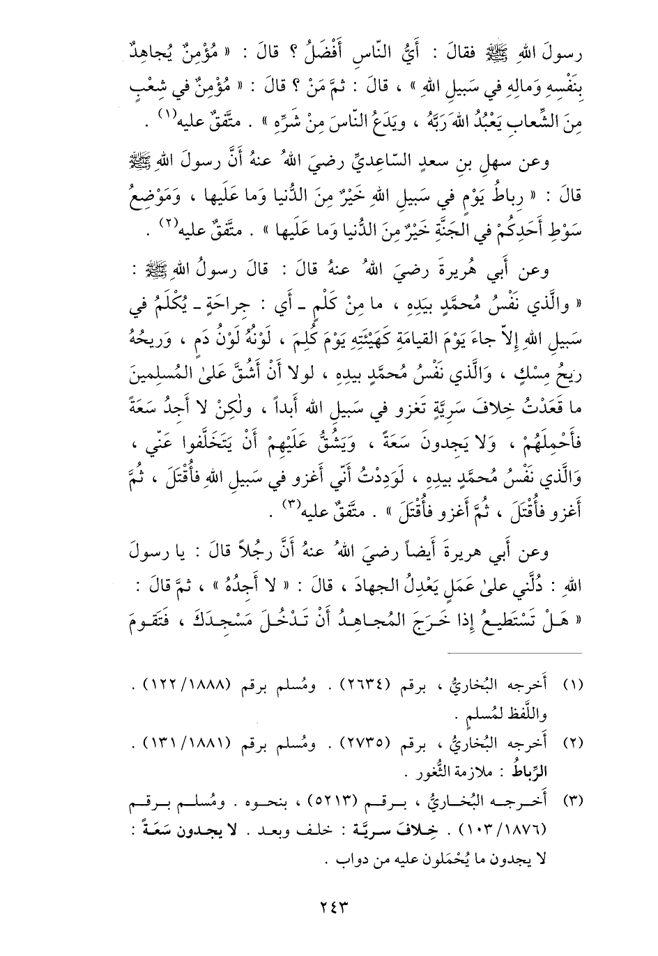 (1) أخرجه البخاريّ، برقم (2634) . ومسلم برقم (1888/ 122) . واللّفظ لمسلم.